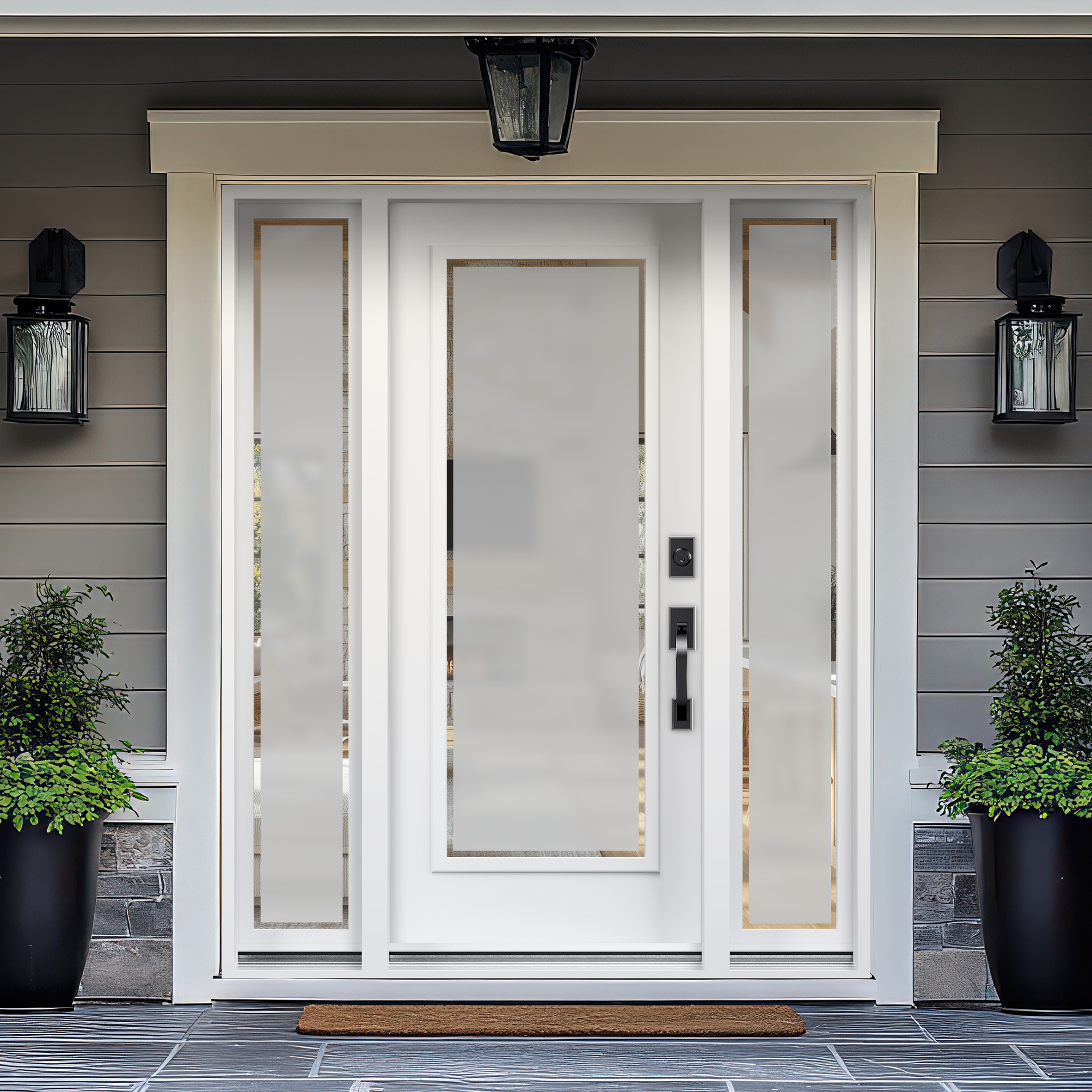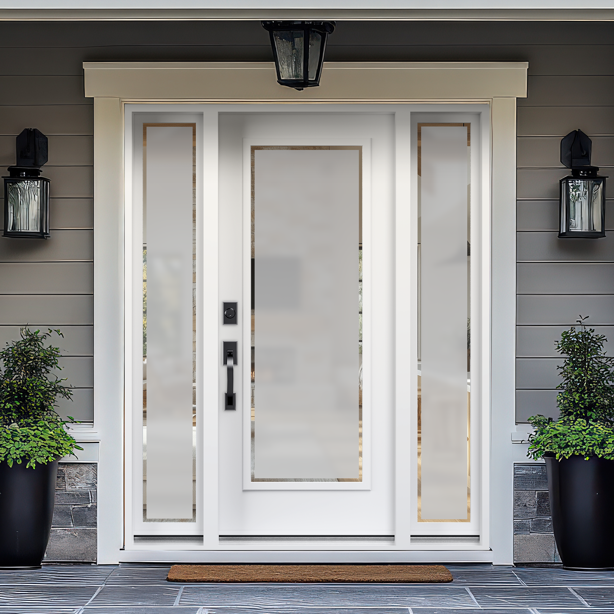 With its sleek, minimalist design and striking clear edges, this large, sandblasted glass door adds a touch of modern sophistication to any home. The frosted glass creates a soft, diffused light that fills the space with an open, airy ambiance, while the clear edges provide a subtle yet elegant contrast, highlighting the door’s clean lines. Its unembellished, contemporary design effortlessly blends with various interior styles, offering both privacy and an enhanced sense of flow. Whether used as an entryway or room divider, this door brings a refined, timeless quality to your home, seamlessly connecting indoor and outdoor spaces.