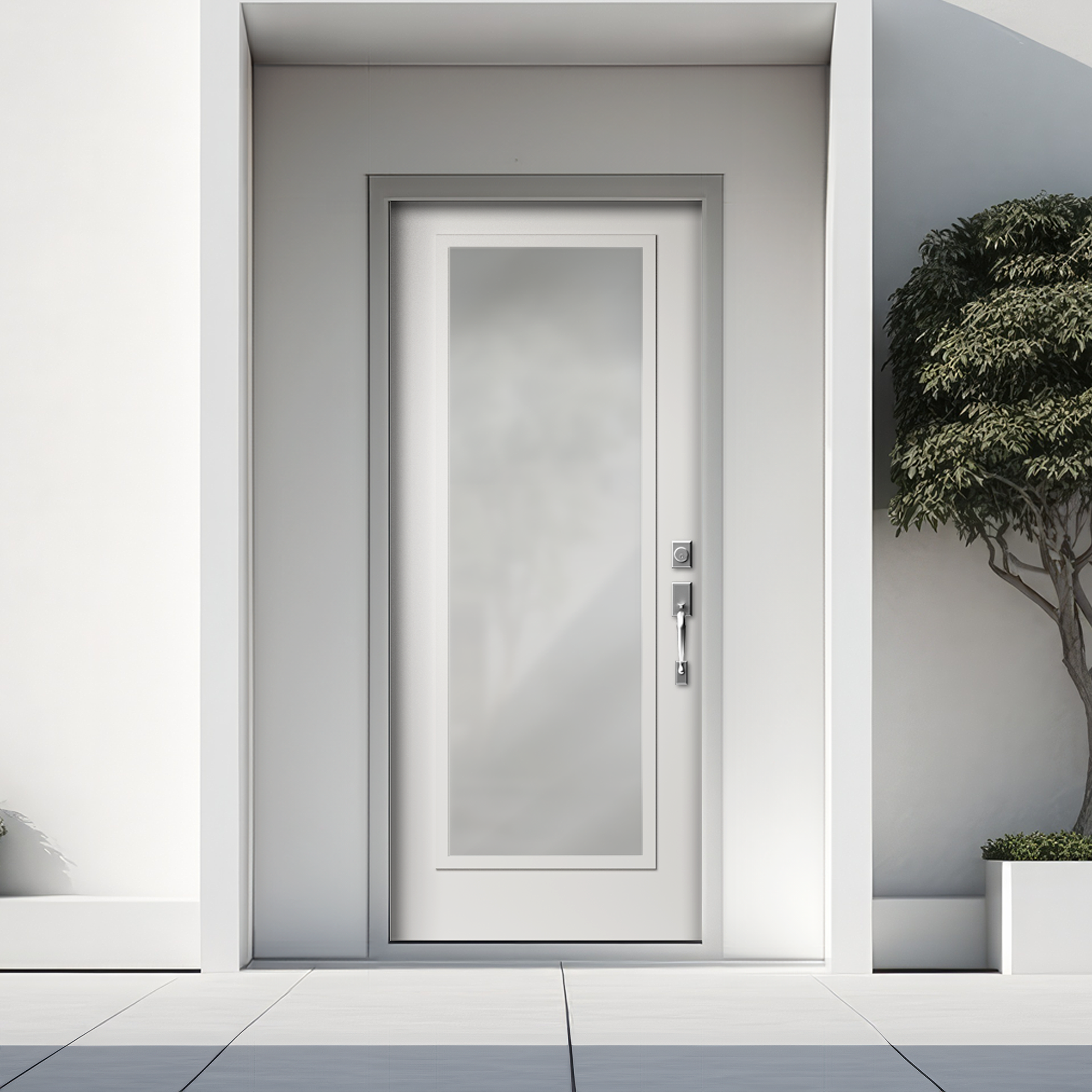 Bold in its simplicity, this sandblasted glass door is the epitome of modern elegance, seamlessly fitting into any home style. The smooth, frosted surface offers a soft diffusion of light, creating an open, airy atmosphere while ensuring privacy. Its unadorned design, free from intricate patterns, highlights the beauty of minimalism and allows it to blend effortlessly with both contemporary and traditional interiors. Whether serving as an entryway or a partition, this door makes a striking statement with its clean lines and sophisticated, timeless appeal, enhancing the flow and connectivity of your space.